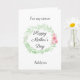 A green watercolor laurel and pink flowers pretty Happy Mother's Day niece card, which you will be able to easily personalize the front with her name. The inside message of this pretty niece Mothers Day card reads a heartfelt message, which you can also personalize if you wanted. The back has the same green watercolor laurel with pink flowers with a place for you to put the names of the child(ren) or whatever you would like. A sweet Mother's Day keepsake that is personalized and sure to be treasured.