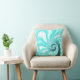 Pretty Ocean Blue Nautilus Shell Spiral Fractal Throw Pillow