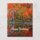 Pretty Orange Autumn Trees Reflection Birthday Postcard