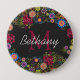 Pretty Ornate Dark Floral Pattern Personalised Button