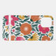This pretty phone case features a hand-drawn floral design in magenta pink, orange, golden yellow, and green. The style is almost chalk-like. A text template is included for personalization - makes a great gift! The background color is shown in white, but it can be customized to a different color, if desired.