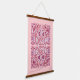 This tapestry with wood hangers has a pretty paisley abstract pattern in shades of pink and white with lace edged tear drop shapes and daisy type flowers.