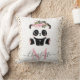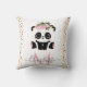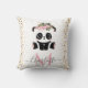 Pretty panda floral monogram personalized pillow. Glamorous kawaii panda bear face with a luxury pink roses arrangement, in blush pink and golden tones. On the sides faux golden pink sparkles confetti. Easily customize and add your name and monogram to personalize the pillow.