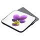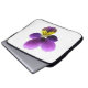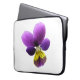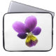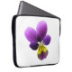 This awesome laptop bag features a highly detailed photograph of a wild pansy flower, taken using macro photography. The flower is purple with a yellow centre.
