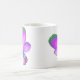 This coffee mug features a photograph of a wild Pansy flower. The photo has been artificially coloured resulting in a pansy with glowing pinkish purple petals with green tips petals and a deep blue centre. The flower is on both sides of the mug. The design is shown here on a basic white coffee mug, but is also available on other styles and colours of mugs, including stunning frosted glass mugs and useful travel mugs.