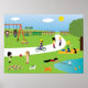 Cute, colourful and pretty children playing in the park with their pets cartoon illustration poster. Ideal for a child´s bedroom, a school, or for the young at heart. You can easily change the size of the poster, have it framed, or even on canvas.