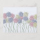 This beautiful postcard features pretty flowers with pastel colors of blue, yellow, and pink with light green water-colored stems. Background of light blue skies. Based on an original art piece by © One Artsy Momma.