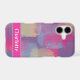 Pastel patchwork abstract design is colourful with pretty yellows, pinks, and purples. The Name can be changed or you can put your initials on instead. A unique, modern, and personalised phone design bridges the gap between high-end, sustainable materials and advanced, customised personality.