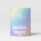 Pretty Pastel Rainbow Sparkle Personalized Gift Pillar Candle