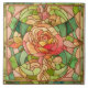 Pretty Peach Rose Stained Glass Style Ceramic Tile