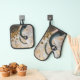 Pretty Peacock Gold Christmas Oven Mitt & Pot Holder Set