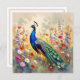 A beautiful illustration of a blue and turquoise peacock in a field of meadow of flowers. Back side of the card is blank so you can write a note.