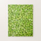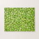 11 X 14 inches jigsaw puzzle with box. This is a difficult mind-bending visual test of your brain in putting together a photo puzzle of peas. Best of luck!