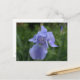 Pretty close-up of Periwinkle Iris with yellow white center and greenery. Bud on long stem in the background. Original Photography by TamiraZDesigns.