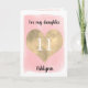 A personalized pink and gold daughter 11th birthday card that features a beautiful gold heart against a pink watercolor. You can personalize gold heart with the age you need and add her name underneath the heart. The inside card message reads a birthday message, which can also be personalized if wanted. The back of the card has the watercolor heart and a happy birthday message. This would make a unique birthday keepsake for her.