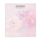 Personalized notepad with a photograph featuring a bouquet of pink carnations. Set on a dreamy ethereal background. A semi-transparent layer over top so the image is faded and easy to write on top of.