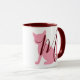 Give a truly unique gift to a loved one with this beautiful white coffee mug. Sturdy and solid, this coffee mug features a pink cat with a cursive letter in the middle with burgundy. Personalize yours today!