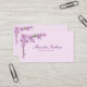 A branch of pretty pink cherry blossoms against a pink background adorns the corners of this business card.