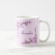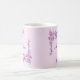 A branch of pretty pink cherry blossoms against a pink background adorns the corners of this customizable mug.
