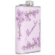 A branch of pretty pink cherry blossoms against a pink background adorns the corners of this candle.