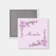 A branch of pretty pink cherry blossoms against a pink background adorns the corners of this customizable magnet.