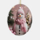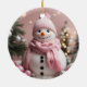 Pretty Pink Christmas Snowman Ceramic Ornament