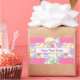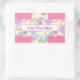 A sticker in candyfloss pink, with crossing sections of colorful circles and rings, like a ribbon around a gift. The sticker can be personalized with a name, thank you message or other wording of your choice. Keep some handy for sealing invitations, as favors or naming children's party bags, and as a pretty accessory for children to stick on their belongings.