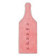 Serve your guests your most delicious dishes with this personalized pink cutting board. This cutting board is paddle shaped with a parchment pink background. Place your order today.