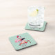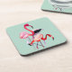 Pretty pink flamingo on blue beverage coaster
