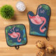 Pretty Pink Flamingo with Name Oven Mitt & Pot Holder Set
