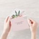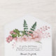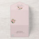 Chic pink, white and green tri-fold wedding invitation, with lovely graphics of pink floral arrangments. The custom text is ready to personalize for your wedding day.