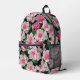 Pretty pink floral boho greenery pattern printed backpack