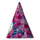 Fun, festive party hat featuring your photo and custom text encircled by a chic faux gold ring and set against a pretty pink, purple and blue floral pattern. Perfect for a birthday party, bridal or baby shower, retirement party, graduation and more.