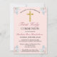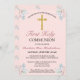 Pretty Pink Floral First Holy Communion Invitation