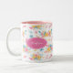 Pretty Pink Floral Pattern Monogrammed Two-Tone Coffee Mug