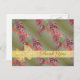 Elegant pink floral design on a tan colored background Thank You postcard. Click on Customize to change font size, style, and color and to add or delete text. This image is available on many products in my gallery. Please visit Smilin' Eyes Treasures to see more flower and nature photography and digital art cards and gifts.