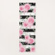 Pretty Pink Floral Roses Black Stripes Yoga Mat
