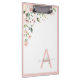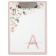 Pretty Pink Floral Script Monogram Initial Name Clipboard