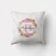 Pretty Pink Floral Wreath Monogram Throw Pillow