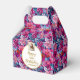 A super cute favor box featuring a photo and custom text surrounded by a gold accent and set against a pretty pink and purple floral pattern. Perfect for a birthday, bridal or baby shower, wedding, retirement, anniversary, graduation and more.