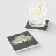 The original painting on this stone coaster is a bunch of pink fuchsias, The original art design is a watercolor picture. The soft pink flowers are hanging amongst a few soft green leaves and are outlined in a sketchy style using a black fine nib pen. The pink flowers look great against the black background on this unique and different bold design. This floral print will really stand out on your coffee table.