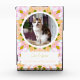 Pretty Pink Green Pet Cat Dog Memorial Keepsake Custom Photo Block. To commemorate your lost family member. Personalise this by replacing the photo and text to your own words. A warm colours sugar pink, summer peach, and spring green, modern geometric pattern starburst surrounds the photo of your pet. Celebrate your pet by capturing your cherished happy family memories with this keepsake.