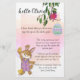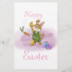 Cute cartoon bunny personalized letter from the Easter Bunny in pink for your sweat girl. It features a cute bunny in pink-purple clothes holding a chicken. There is a tree branch with a flower and a cute message that you can replace to make it yours. The back has a bunny graphic with a Happy Easter greeting. You can replace all text. Happy Easter! Don't forget to look under the same collection for a cute envelope with this hand-painted bunny.