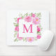 Floral theme monogram mousepad. It features watercolor square floral frame of pink peonies and greenery. Personalize by adding a monogram. This will be perfect as a personalized gift.