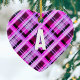 Pretty Pink Plaid Modern Tartan Monogram Christmas Ceramic Ornament