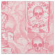 A collage of vintage images including skulls, flowers, and a fancy perfume bottle forms this pretty pink poison bottle pattern.