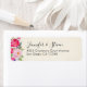 Return address labels with a rose and peonie flower on the left border. Cheerful and summery. Background is a faux parchment image.