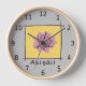 Pretty pink rose doodle, your name, on gray clock