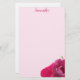 Pretty pink stationery with personalization. A soft pink rose blossom in the corner adds a dainty touch of beauty to the paper.