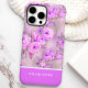 This elegant phone case features a delicate watercolor design of pretty pink roses accented with soft greenery on a muted mauve background. The romantic floral arrangement exudes timeless charm, making it perfect for those who love feminine and stylish designs. A customizable white nameplate on a bold pink band adds a personal and modern touch, making this case an excellent accessory for daily use or a thoughtful gift.